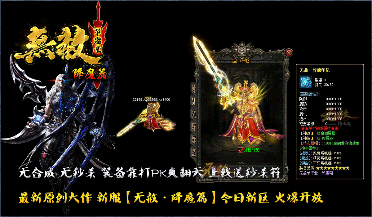 最新原创大作 新服【无赦单职业第二章·上古神器】今日新区 火爆开放!